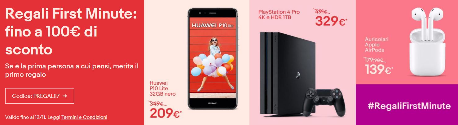 Il buono è applicabile su un acquisto minimo di 20€, con uno sconto massimo ottenibile di 100€. La promozione è attiva sino 23:59 del 12/11/2017, per ulteriori informazioni potete consultare la pagina ufficiale a questo link o cliccando sull’immagine sottostante.