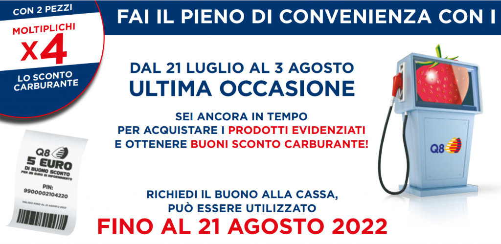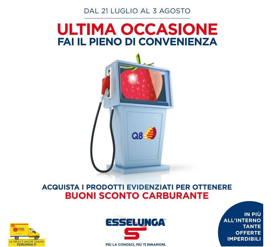Come abbiamo già segnalato il mese scorso, è ancora attiva fino al 3 agosto la promozione che ti permette di risparmiare sul carburante acquistando prodotti idonei da Esselunga.