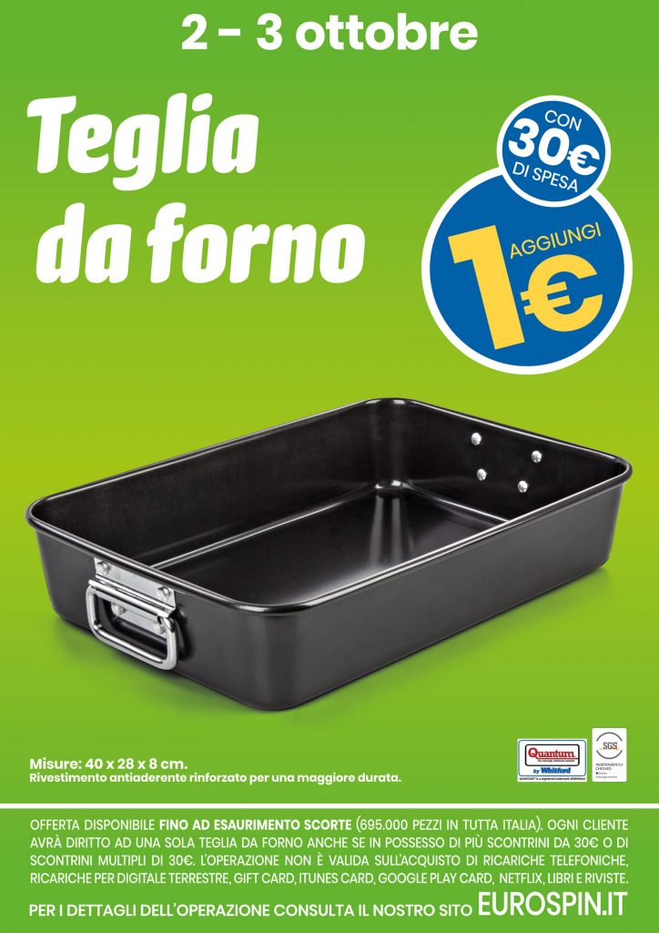 Solo il 2 e 3 ottobre 2020 puoi ottenere l’esclusiva Teglia da Forno Quantum da Eurospin!