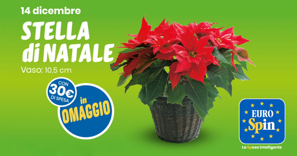 Preparati al Natale con una splendida Stella di Natale in OMAGGIO da Eurospin! Acquista il necessario al pranzo di Natale e ricevi subito il premio!