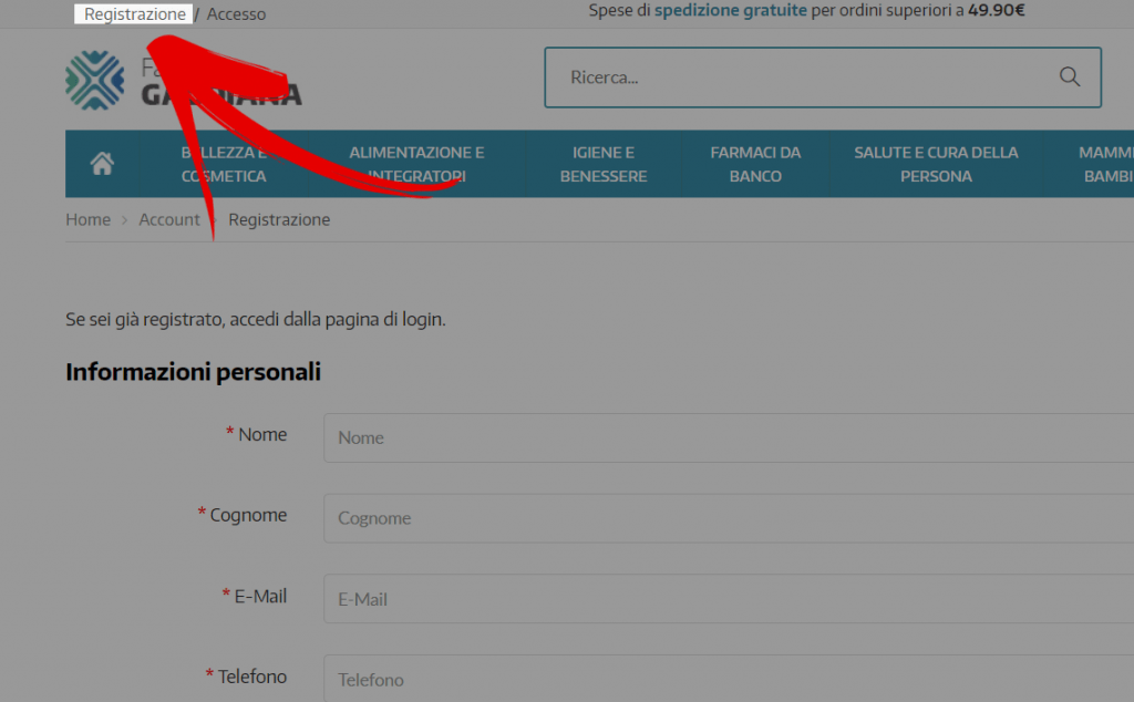 Collegati su FarmaciaGaudiana.it e crea un nuovo account*.