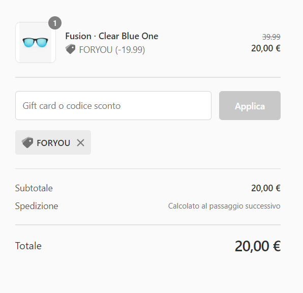 Arrivato al momento del pagamento, potrai inserire il seguente codice sconto: