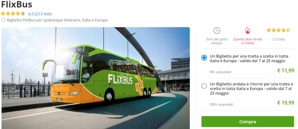 Approfitta della FlixBus Promo Pasqua, in collaborazione con Groupon, che ti permette di viaggiare in tutta Italia ed Europa a soli 11,99€!