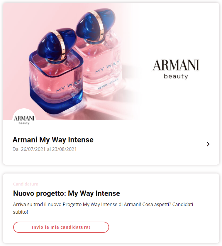 Trnd ti offre l’occasione di provare gratis il nuovo profumo Giorgio Armani My Way Intense: candidati e, se soddisferai i requisiti, diventerai tester del prodotto!