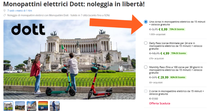 Groupon: corse in monopattino elettrico DOTT da soli 0,99€ con sblocco gratuito! Valido in 7 città