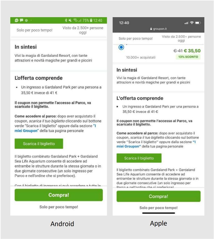 Per approfittare dei super sconti, vai sul sito di Groupon e acquista il coupon.