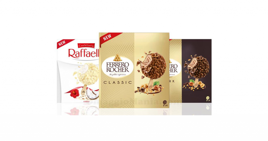 Si tratta di 3 gelati che faranno venire l’acquolina in bocca a gran parte dei consumatori: il gelato Raffaello e il gelato Ferrero Rocher Classic e Dark.