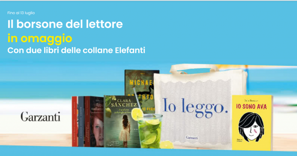 Tempo di promozioni sul sito di IBS. Ieri infatti vi abbiamo parlato del telo mare in regalo con 2 tascabili Bompiani. Ma non è l’unica iniziativa in atto su IBS: con “Io Leggo Estate 2021- Garzanti“, se acquisti 2 libri delle collane Elefanti presenti in pagina ricevi in omaggio il borsone del lettore!