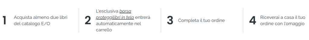 Se, invece, effettui due o più acquisti con almeno 2 libri del catalogo Edizioni E/O, riceverai due o più borse proteggilibri in proporzione al numero di spese fatte.