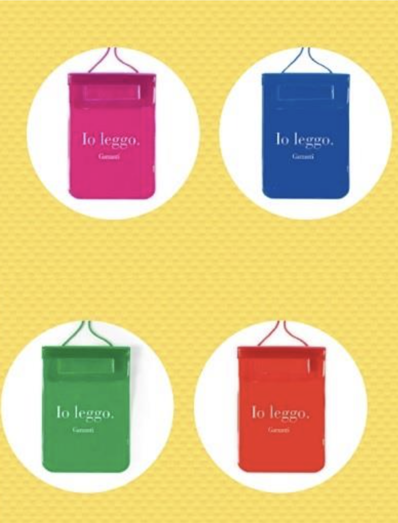 Vanta una doppia chiusura a tenuta stagna e, oltre ad essere impermeabile è anche sensibile al touchscreen. Frontalmente è arricchita dalla scritta “Io leggo”.