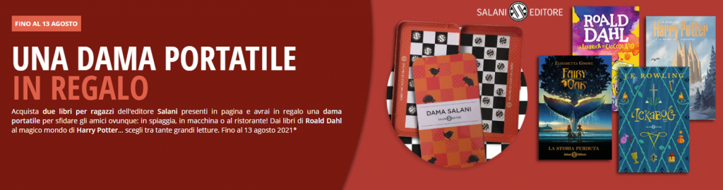Entro il 13 agosto 2021, acquista almeno due libri per ragazzi dell’editore Salani sul sito di iBS e avrai in regalo la tua dama portatile.
