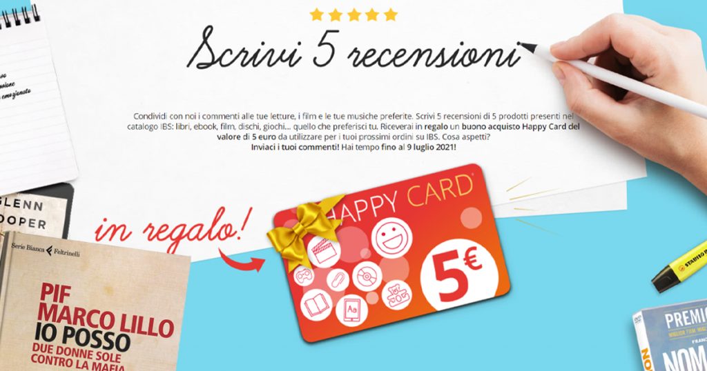 Torna una delle promozione più apprezzate di IBS: ottieni un buono da 5 euro semplicemente scrivendo 5 recensioni!
