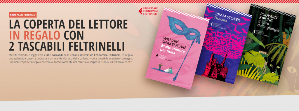 Fino al 20 febbraio 2022, con l’acquisto di almeno 2 tascabili della collana Universale Economica Feltrinelli riceverai in omaggio la Coperta del Lettore.