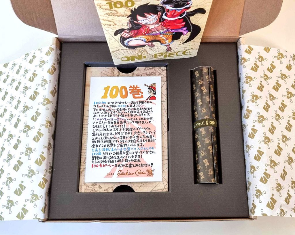 Per celebrare il centesimo volume — traguardo raggiunto per la prima volta in Italia da una serie fumettistica — nasce la One Piece n. 100: Celebration Edition. Stiamo parlando di una particolare edizione caratterizzata da uno speciale box in tiratura limitata, pronto a conquistare i cuori di tutti i fan.