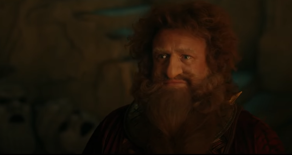 Dopo di che c’è un breve scorcio della principessa nana Disa con le mani ricoperte d’oro che alza le braccia. Forse le sue mani sono coperte d’oro perché stava forgiando gli Anelli del potere? Non possiamo saperlo.