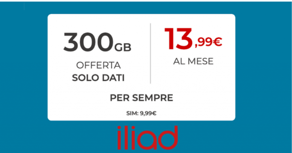 Iliad, torna l’offerta solo dati più conveniente di sempre: 300GB con soli 13,99€!