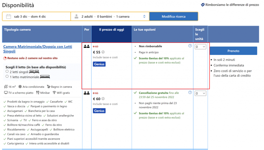 Dato l’ottimo rapporto qualità/prezzo la disponibilità non è molta. Tante camere sono infatti andate a ruba e alcune date sono già esaurite!