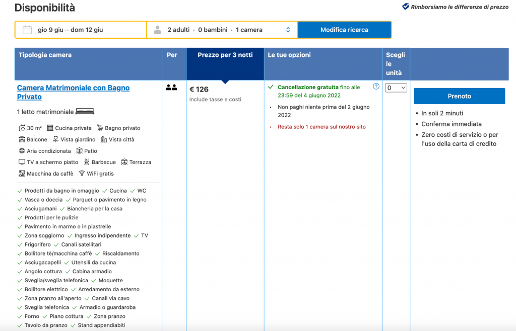 Esempio di offerta su Booking