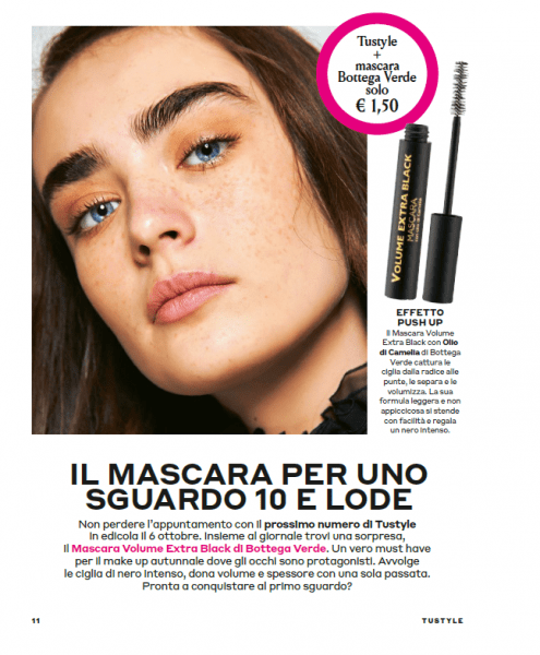 Con il numero 40-41 di Tu Style, trovi in OMAGGIO il Mascara volume Extra black di Bottega Verde!