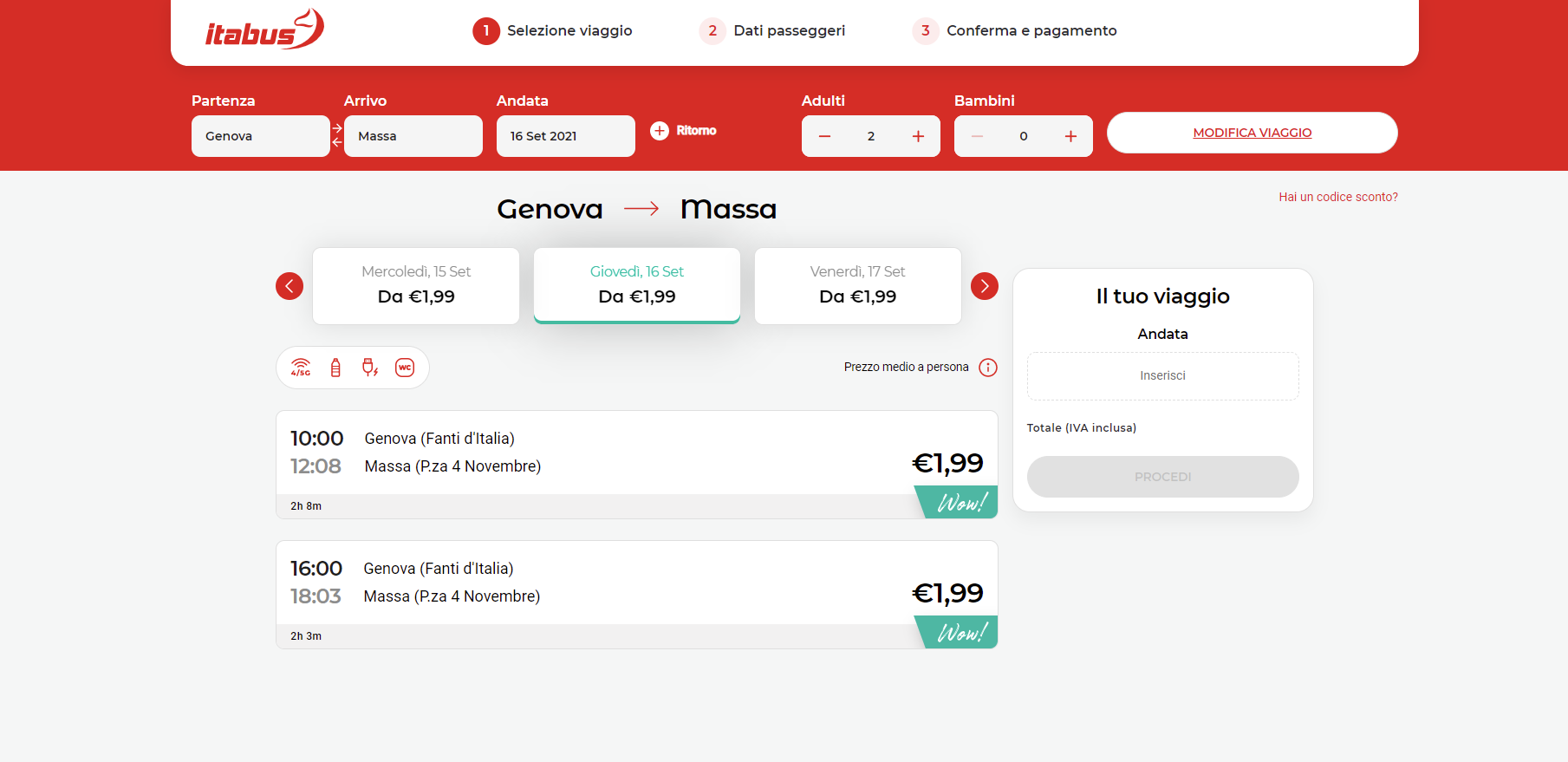Una volta trovata la soluzione per te più ideale, puoi procedere all’acquisto dei biglietti in sconto cliccando sull’apposito pulsante.