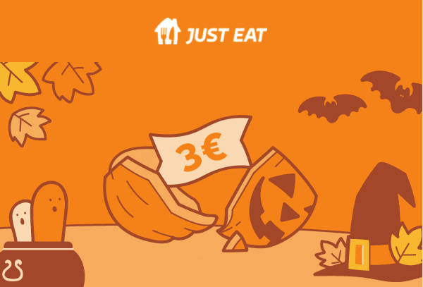 Affida la tua cena di Halloween a Just Eat e, in omaggio, otterrai un buono sconto da 3€ sul tuo prossimo ordine!