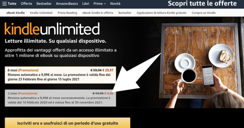 Torna in promozione Kindle Unlimited su Amazon: per due mesi non pagherai nessun costo di abbonamento, ed è disattivabile in qualsiasi momento!
