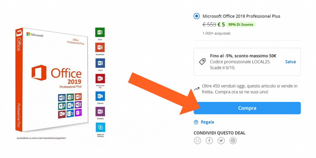 Prezzo BOMBA per la licenza a vita del pacchetto Office completo: include Microsoft Word, Excel, PowerPoint, Outlook, Publisher e Access, oltre a Skype for Business!