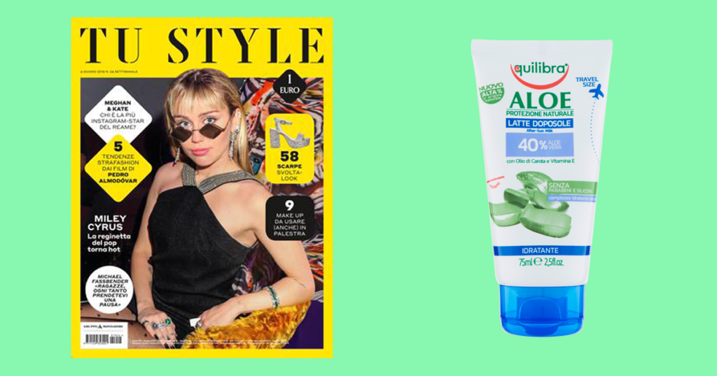 Per tutta la settimana, troverai in edicola il nuovo numero 24 di TuStyle, che porta in allegato il Latte Doposole Aloe Equilibra!
