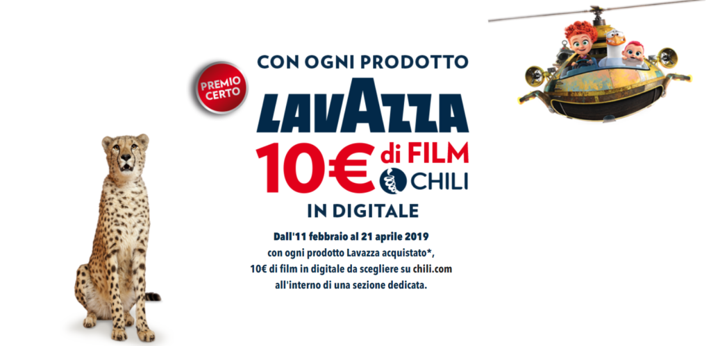 Approfitta della nuova operazione a premi sicuri “Il Grande Cinema prende vita a casa tua”. Per te un credito di 10€ su CHILI acquistando prodotti Lavazza!