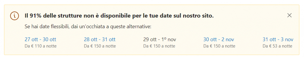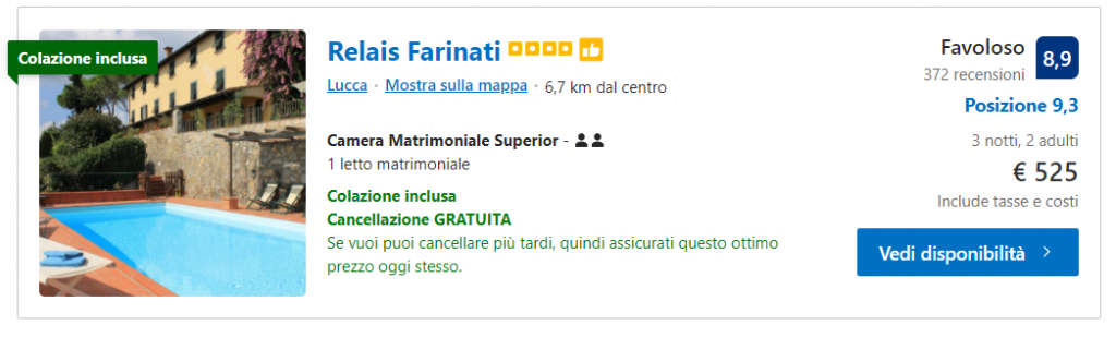 Se si fa una ricerca su Booking degli alloggi disponibili a Lucca nel periodo 29 ottobre – 1 novembre 2021, oltre il 90% è già stato prenotato.