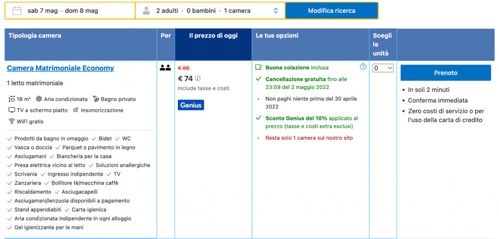 • 21-22 maggio: 37€ a testa per Camera Matrimoniale Economy;