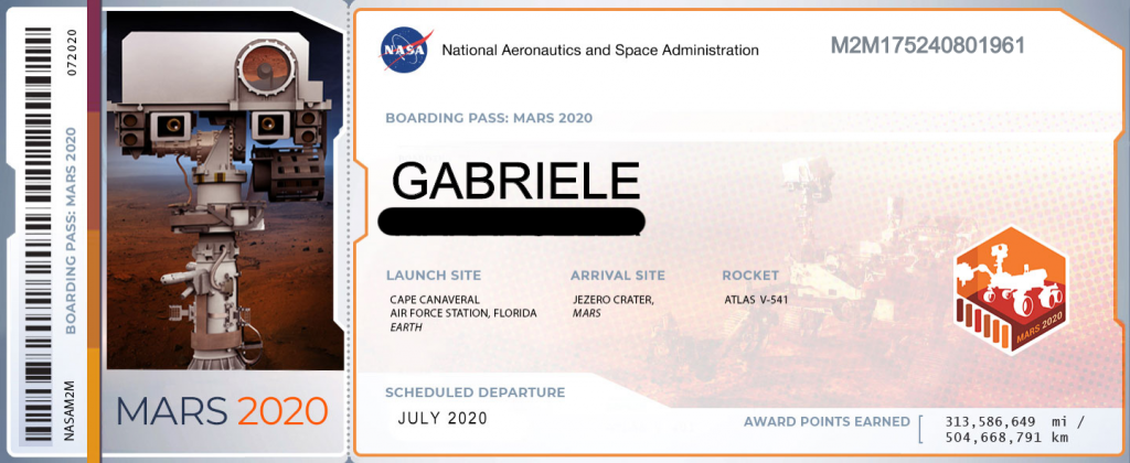 marte missione 2020 il tuo nome biglietto boarding pass