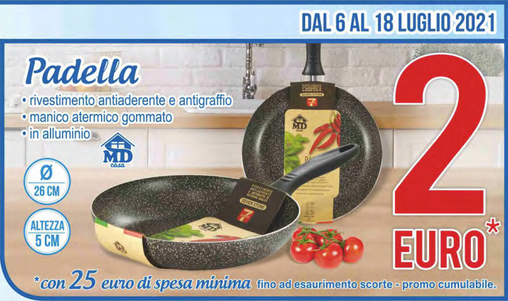 Dal 6 al 18 luglio 2021, da MD hai l’occasione di portarti a casa una Padella Antiaderente a soli 2€!