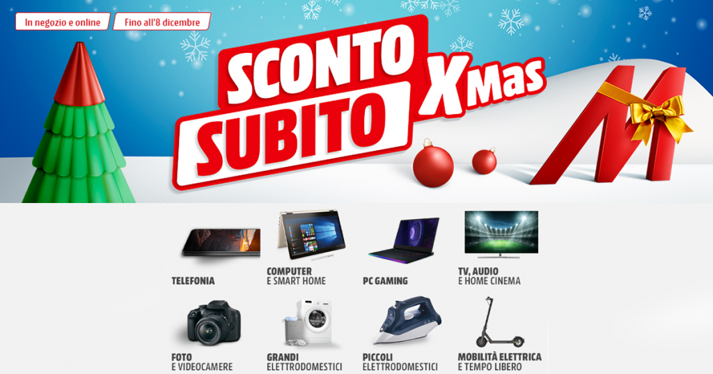 Fino all’8 Dicembre tornano gli sconti fino a 400 euro di Mediaworld: approfitta della promo “XMAS Sconto Subito” di Mediaworld!