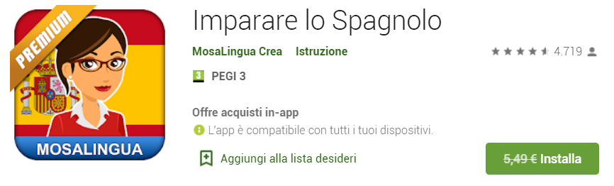 Approfitta di “Mosalingua Premium – Imparare lo Spagnolo”: per poco tempo lo troverai GRATIS sul Play Store!