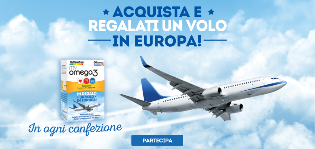 Acquista My Omega 3 con Multicentrum Destinazione Benessere e ricevi come premio sicuro un volo per l’Europa!