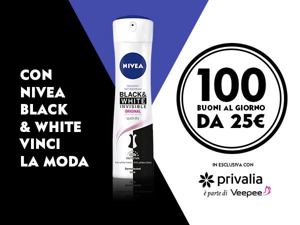 Partecipa al nuovo concorso Nivea Black & White: potrai vincere 100 buoni Privalia da 25€ ogni giorno!