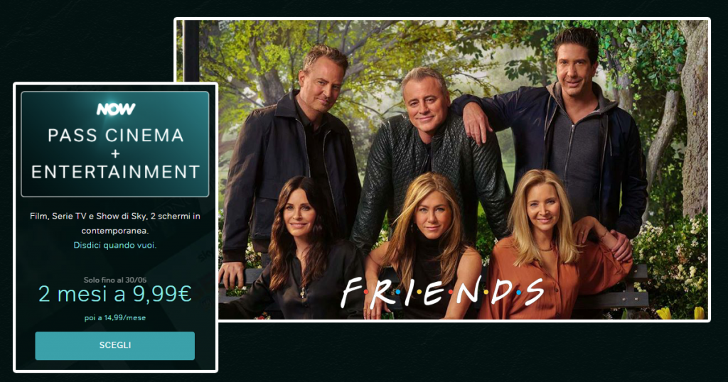 Arriva anche in Italia la Reunion di Friends, in contemporanea con gli USA ed in esclusiva su Sky e NOW TV. Per l’occasione, NOW TV offre 2 mesi del pacchetto Pass Cinema + Entertainment a soli 9,99€!