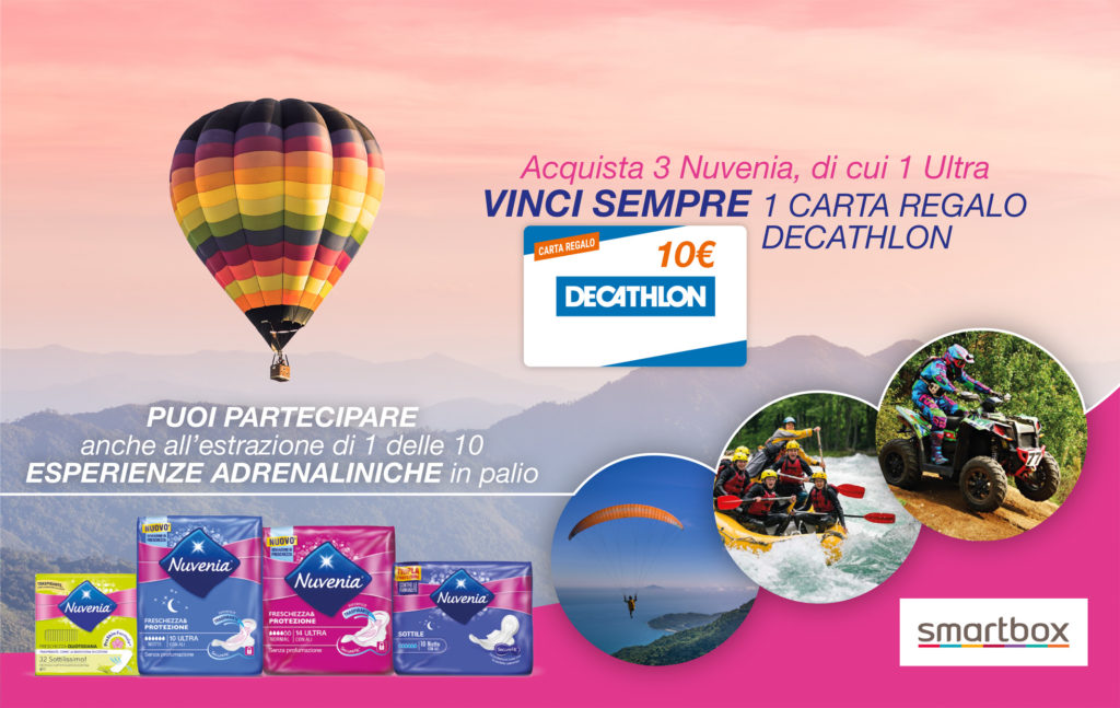 Partecipa alla nuova iniziativa di Nuvenia, con cui riceverai buoni Decathlon assicurati e parteciperai all’estrazione di esperienze adrenaliniche!