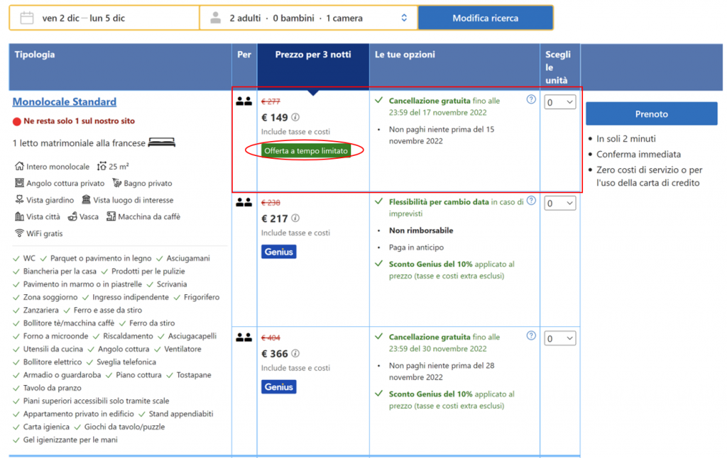 Si tratta di un’offerta da cogliere al volo perché rientra tra quelle a tempo limitato su Booking: lo sconto rispetto al prezzo normale è davvero altissimo, pari al 46%!