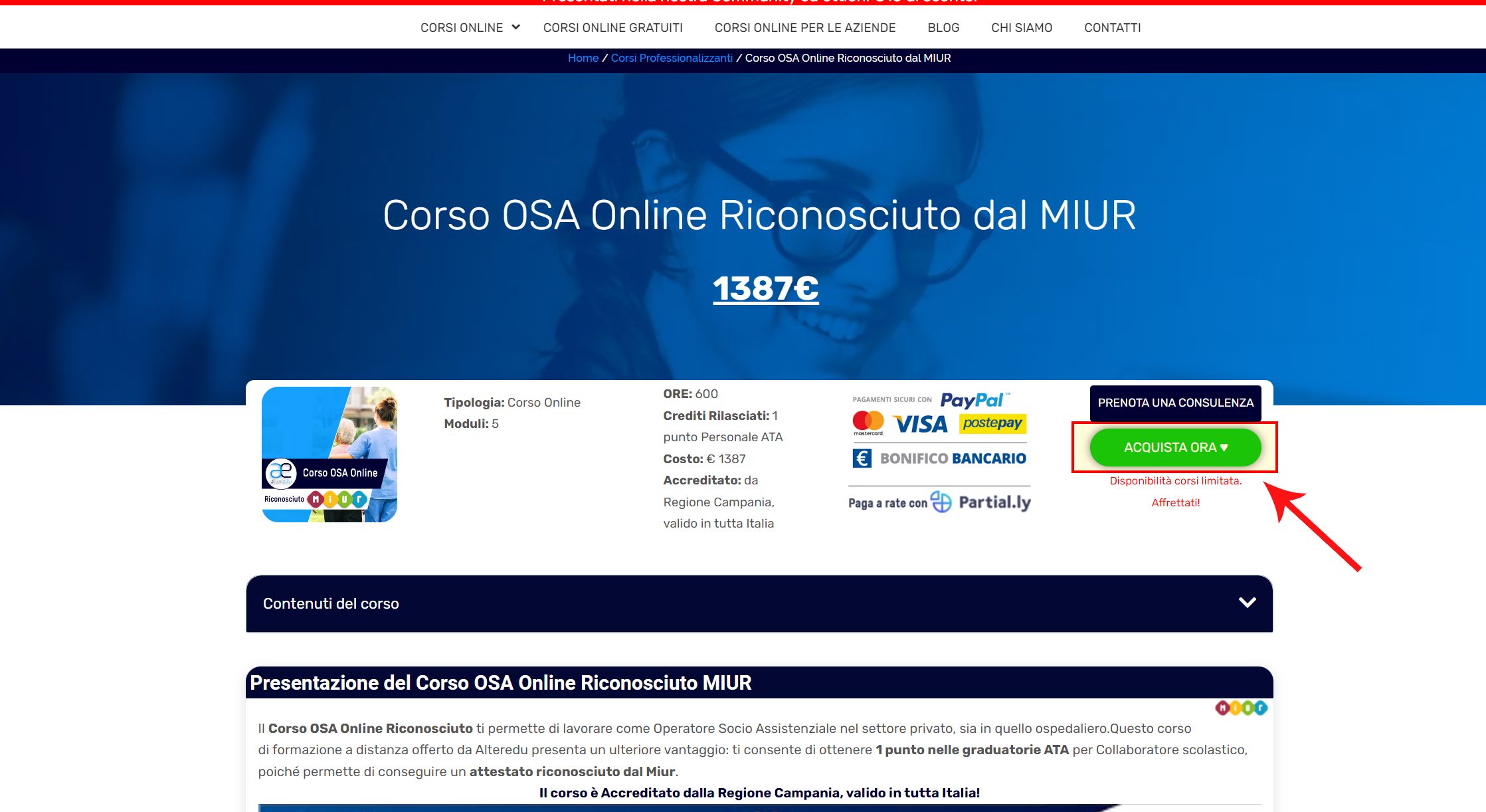 Collegati sulla homepage del sito oppure sul link di un corso selezionato tra i più richiesti.