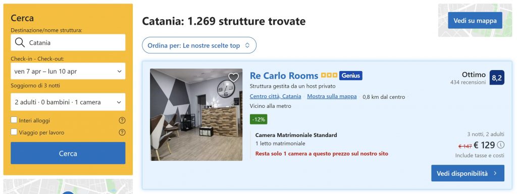 Su Booking, “Re Carlo Rooms” ha una valutazione ottima di 8,2/10 con 434 recensioni.