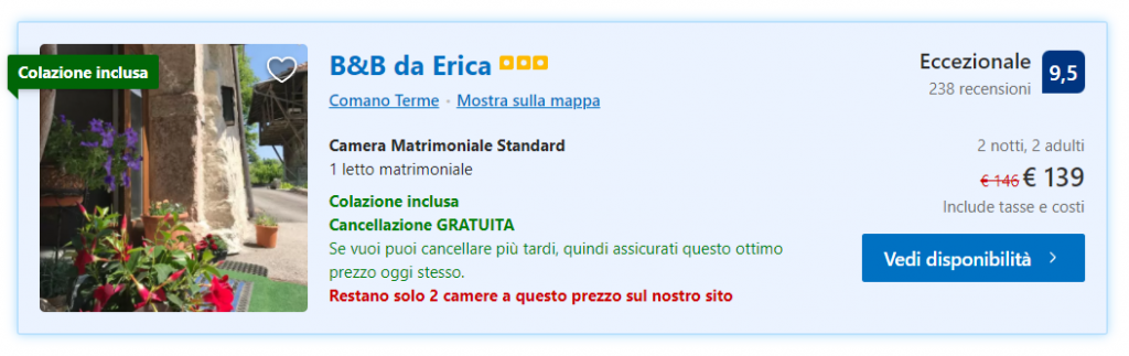 Come abbiamo visto, uno dei punti forti più apprezzati del B&B da Erica è la qualità prezzo.