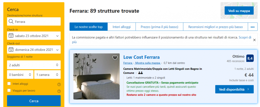 L’alloggio Low Cost Ferrara ha una valutazione media di 8,4 su 10 su Booking, con oltre 480 recensioni!