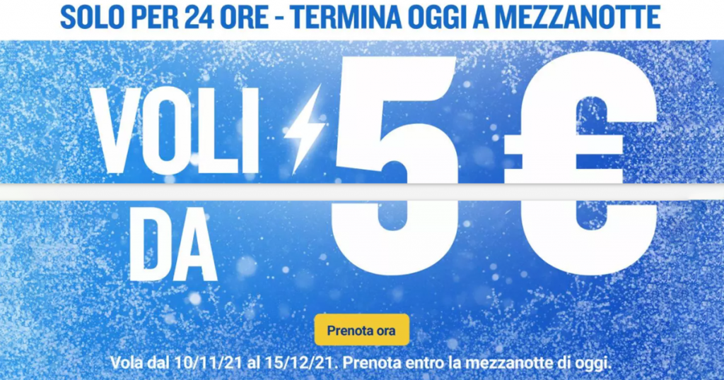Parti ovunque con Ryanair prenotando un volo OGGI a soli 5 euro e volando entro il 15 di dicembre!