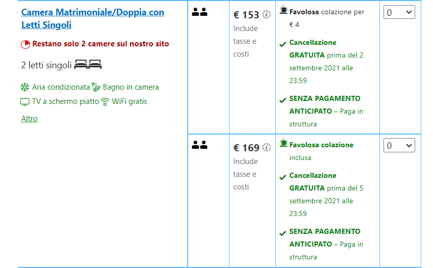 Ecco un esempio per le date dall’8 al 12 settembre (mercoledì-domenica), quando la stagione è ancora calda. Si può risparmiare ancora di più scegliendo il weekend dopo.