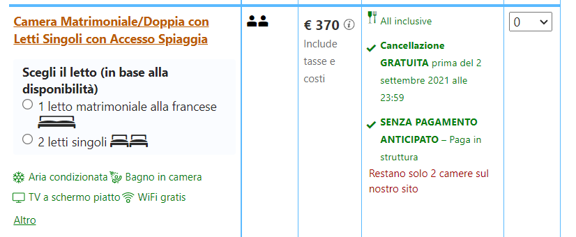 • 1-5 settembre: a partire da 193€ per la camera matrimoniale, fino a 388€ All Inclusive!