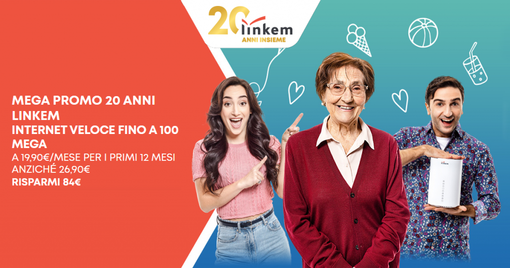• Mega Promo 20 anni LINKEM: risparmio di 84€ nei primi 12 mesi