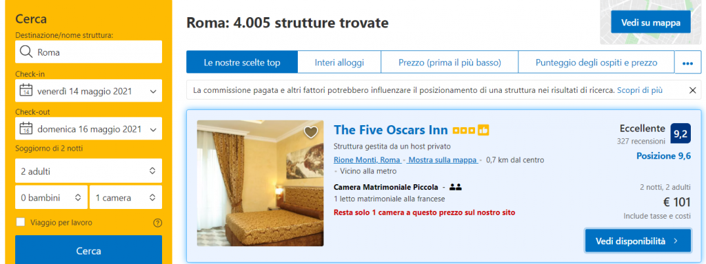 L’Hotel che abbiamo selezionato è il Five Oscars Inn, un affittacamere a 3 stelle su Booking che offre camere matrimoniali in soluzione piccola e grande e camere triple dal look lussuoso e pulito.