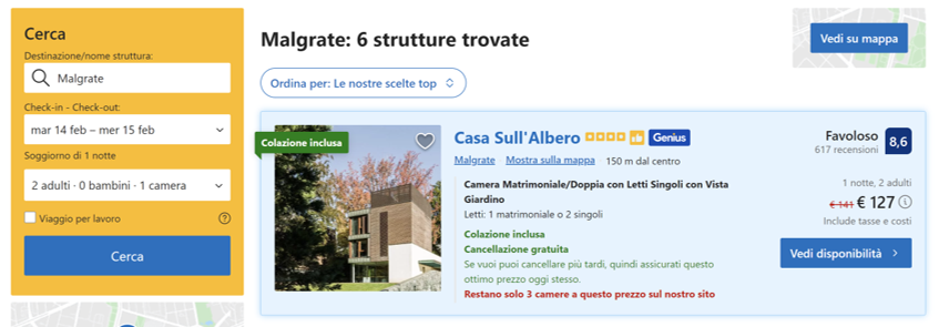 Esempio di offerta su Booking